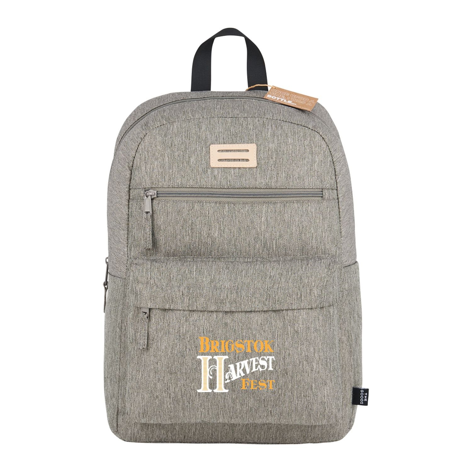 The Goods Recycled 15” Laptop Backpack includes a pocket for all your needs. Made from RPET, this backpack features two zippered front pocket and a side water bottle pocket. The zippered main compartment includes a 15” laptop sleeve. The RPET lash tab keeps this backpack on trend. This backpack has padded, adjustable shoulder straps, a top grab handle, and a trolley sleeve. Through a partnership with 1% For The Planet, one percent of sales of all EcoSmart® products are donated to environmental nonprofits.