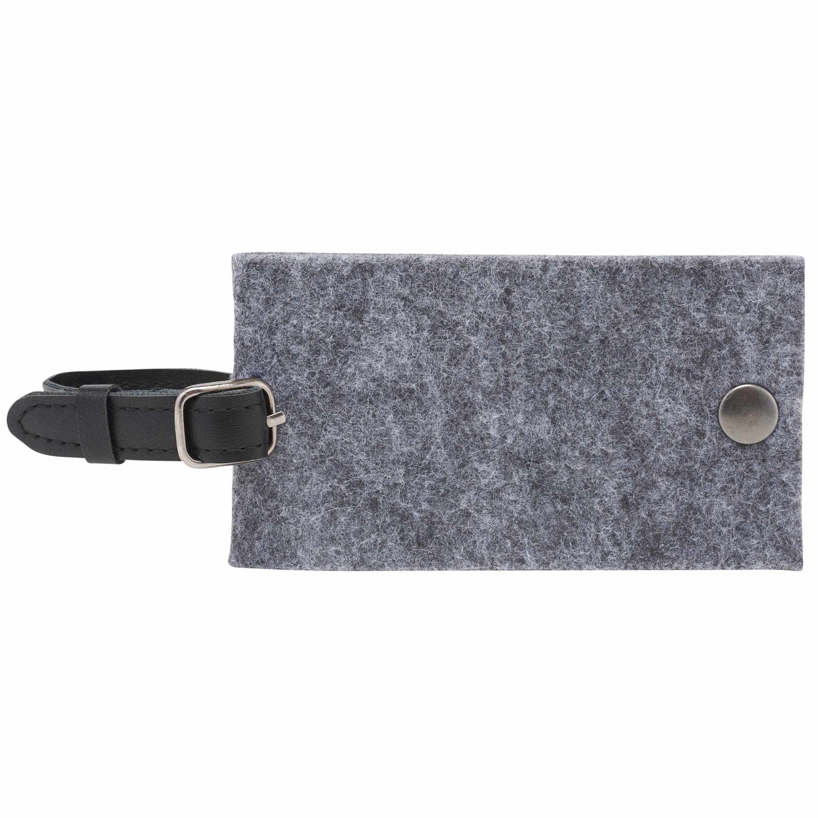 The recycled felt collection uses a durable on-trend material to let your brand shine. The luggage tag features a snap window to clearly display your business card or preferred ID method and adjustable strap for a perfect fit to any luggage piece. Through a partnership with 1% For The Planet one percent of sales of this and all EcoSmart® products will be donated to environmental nonprofits. Key Features Adjustable strap with metal buckle closure Secure secure metal snap closure PVC window card slot This luggage tag uses fabric made from recycled PET plastic bottles, and the leather-free strap is made from recycled PVC