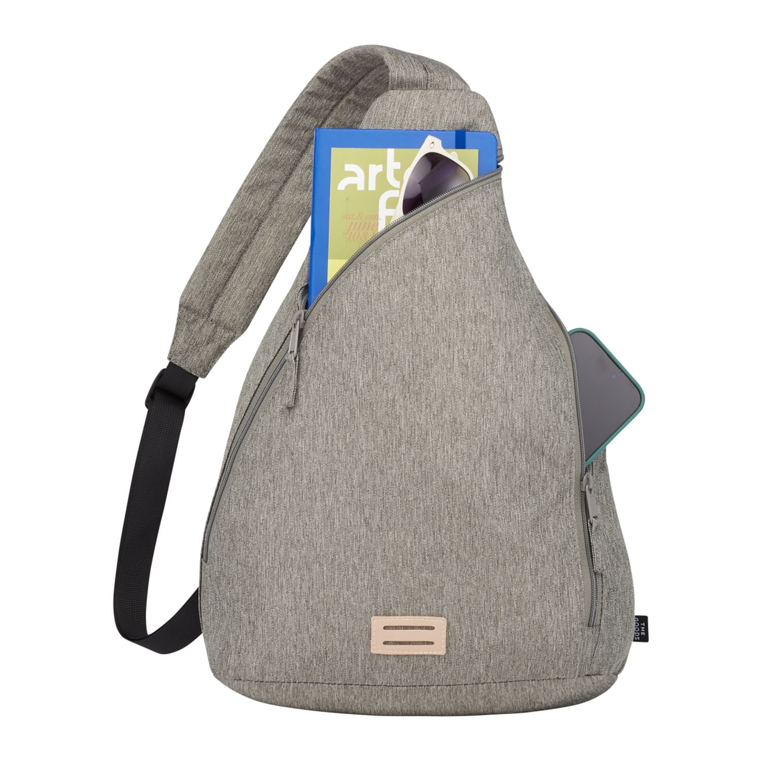 The Goods Recycled Sling is made from 600D RPET. This sling features a front zippered pocket and a zippered main compartment. The padded, adjustable shoulder strap and RPET lash tab upgrade this sling. Through a partnership with 1% For The Planet, one percent of sales of all EcoSmart® products are donated to environmental nonprofits.