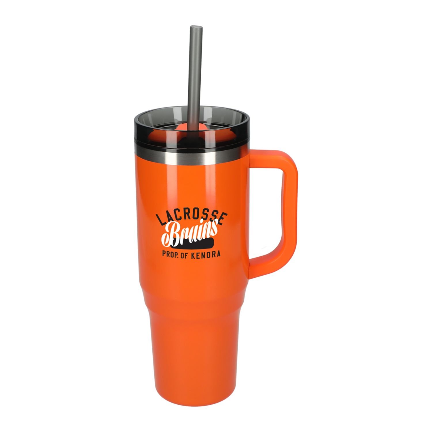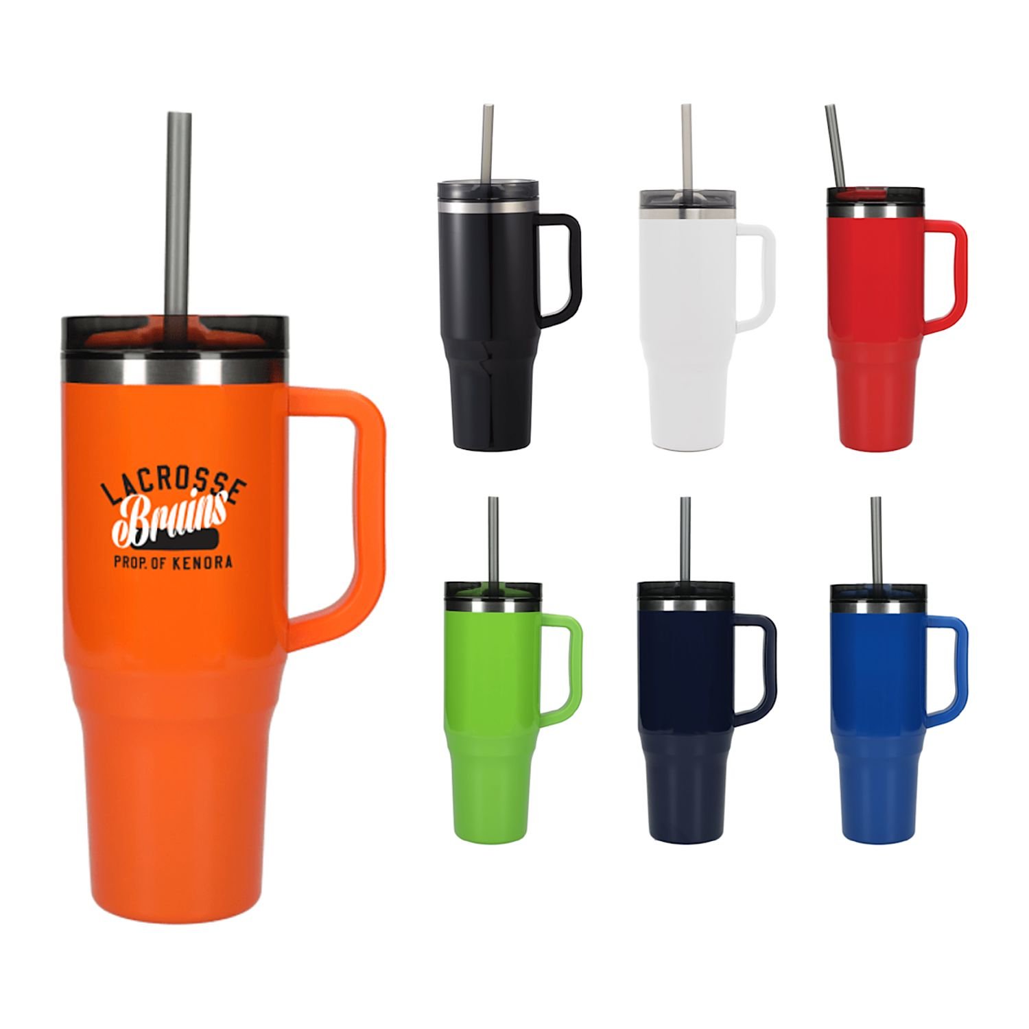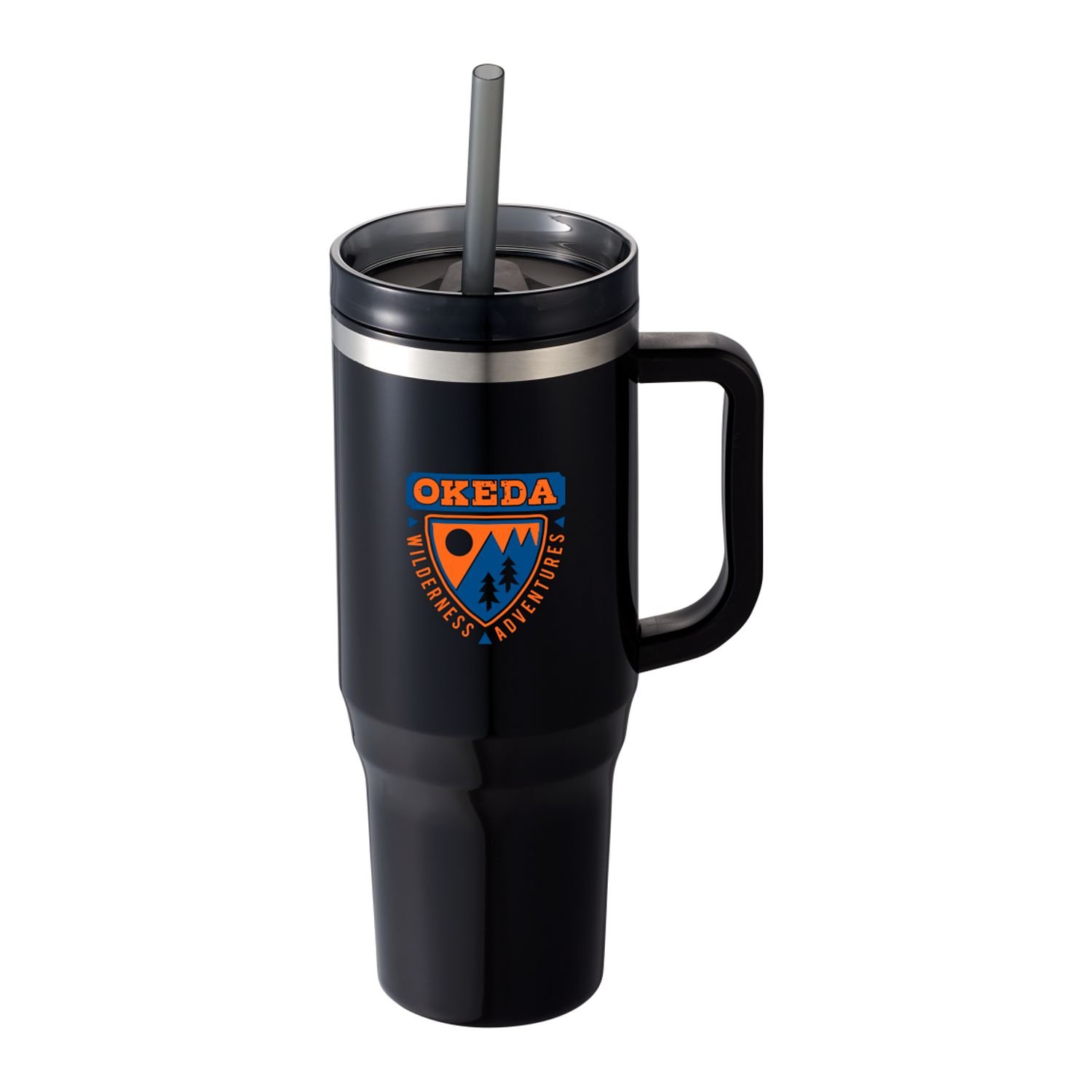 The Thor 40 oz Eco-Friendly Straw Tumbler features durable double-wall construction to keep your beverages hot or cold in any environment. Food-grade recycled straw included for easy reuse daily. The Thor has a 40 oz capacity for fewer refills and features a slim base that fits into most cupholders, comfortable carry handle, and splash-proof press-on lid with two openings and a swivel closure, friendly to both Sippers and Chuggers! Hand-wash only.