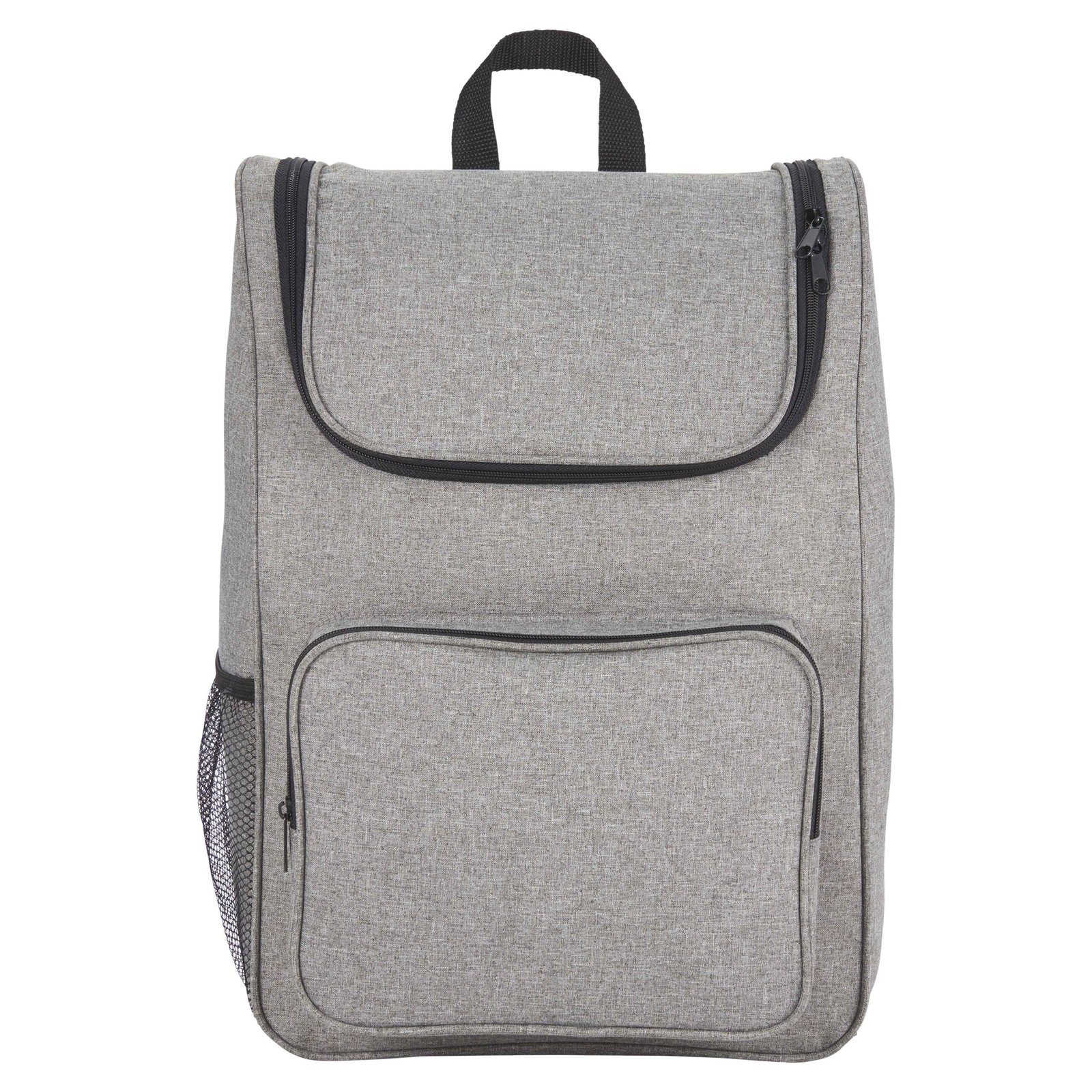 The Trek 15″ Computer Backpack features a large zippered U-shaped opening with a 15″ laptop sleeve. This custom computer backpacks includes a padded back, zippered front pocket and adjustable backpack straps. Disclaimer: There may be minor variations in color of the actual product due to the nature of the fabric dyes, weaves and printing. Key Features Material: 600D PolyCanvas Extra-large open main compartment for maximum storage 11″ handle drop for easy carrying Sturdy wire rim adds structure and stability Part of the Utility collection