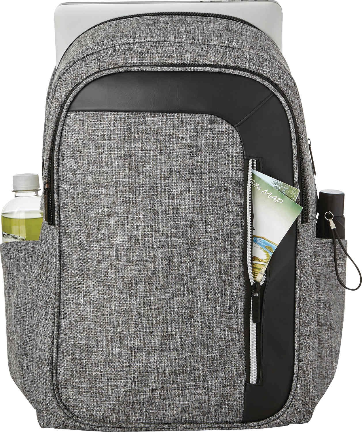 The Vault RFID Security 15″ Computer Backpack keeps your belongings safe. This security computer backpack includes a zippered main compartment that holds up to 15″ laptops, plus a padded compartment for an iPad or tablet. Keep your wallet, passport, and credit cards safe from identity theft in the RFID-blocking pocket in the large front zippered pocket with organization. Store additional items in the two side pockets. The Vault RFID Security Computer Backpack includes adjustable, padded backpack straps, carry handle and trolley sleeve. Key Features Zippered main compartment holds up to 15″ laptop Padded compartment for iPad or tablet Key fob and hidden zippered RFID-blocking pocket Large front zippered pocket with organizational features Two side pockets for additional storage Adjustable, padded backpack straps Carry handle and trolley sleeve