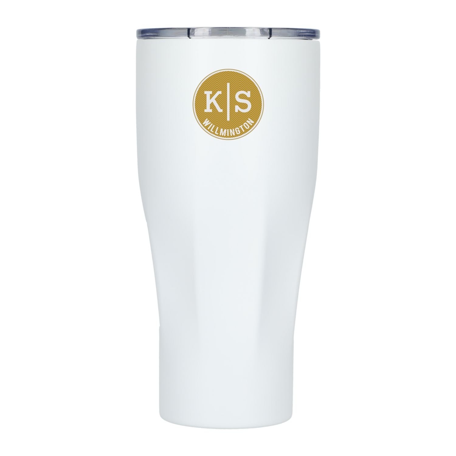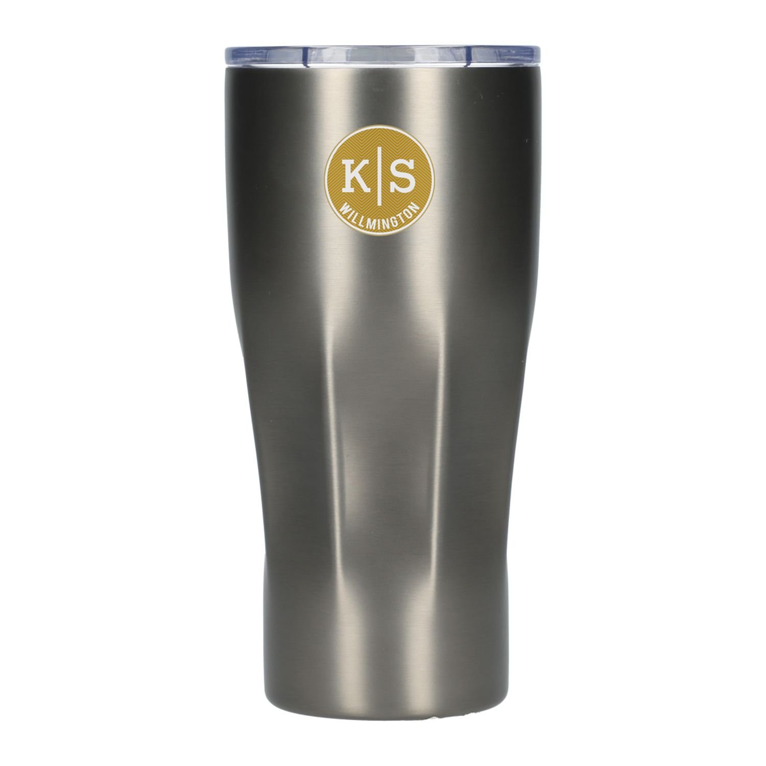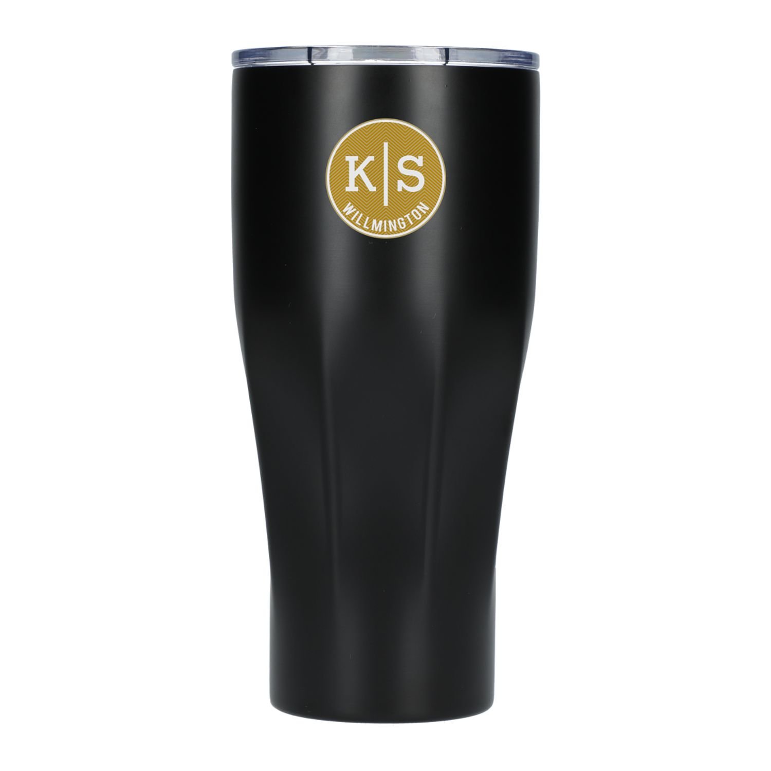 The Victor Copper Vacuum Insulated Tumbler 20oz features double-wall construction designed to keep beverages hot for up to 8 hours or cold for up to 24 hours. With a condensation-resistant exterior, push-on 100% recycled SAN lid with Tritan slider, and easy-to-clean wide opening, this 20oz tumbler is designed for convenience. It features a ribbed grip design and is made from 91% post-consumer recycled 18/8 stainless steel with copper vacuum insulation. Hand wash only. 20oz