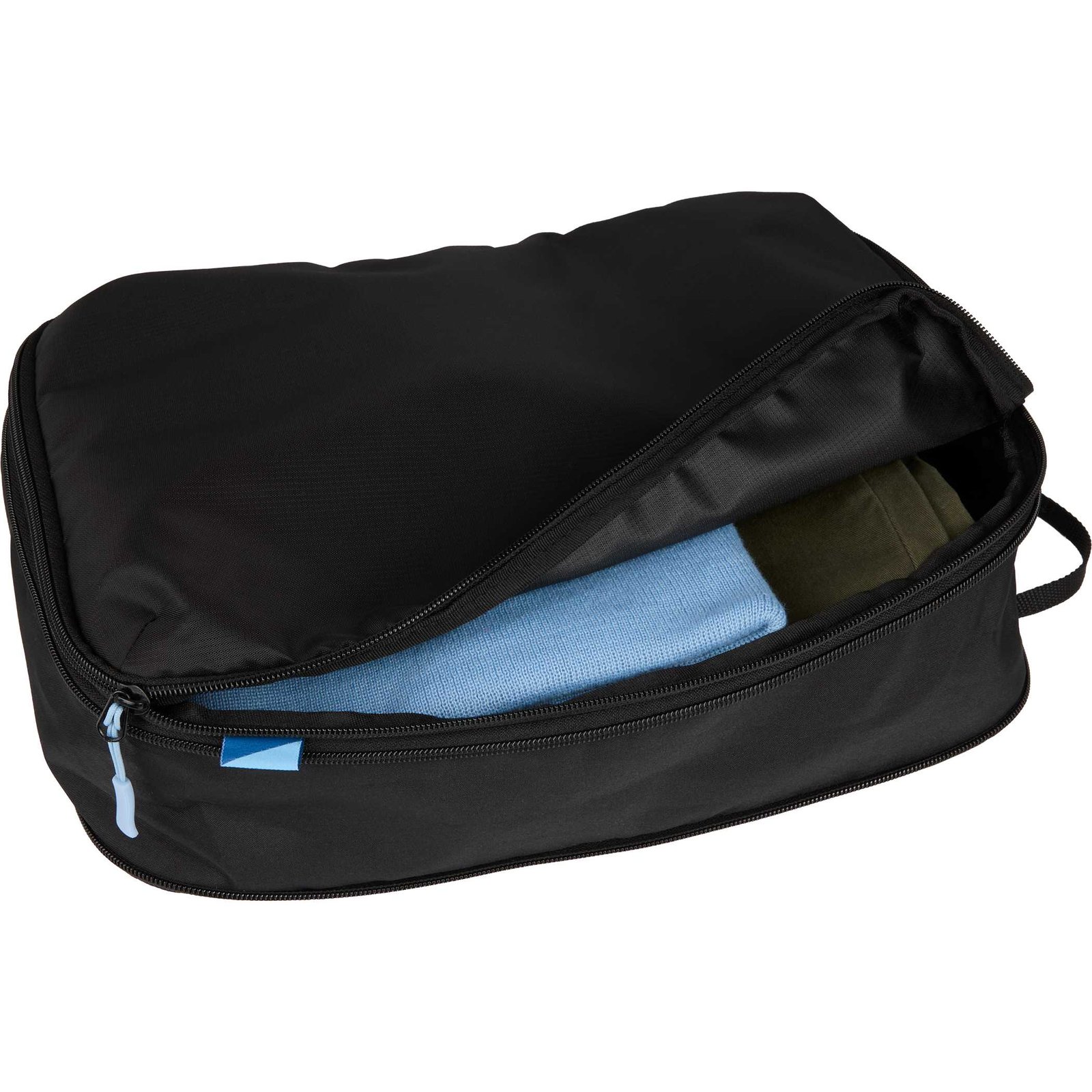 - Blue zipper pulls – Add a pop of color and quick identification