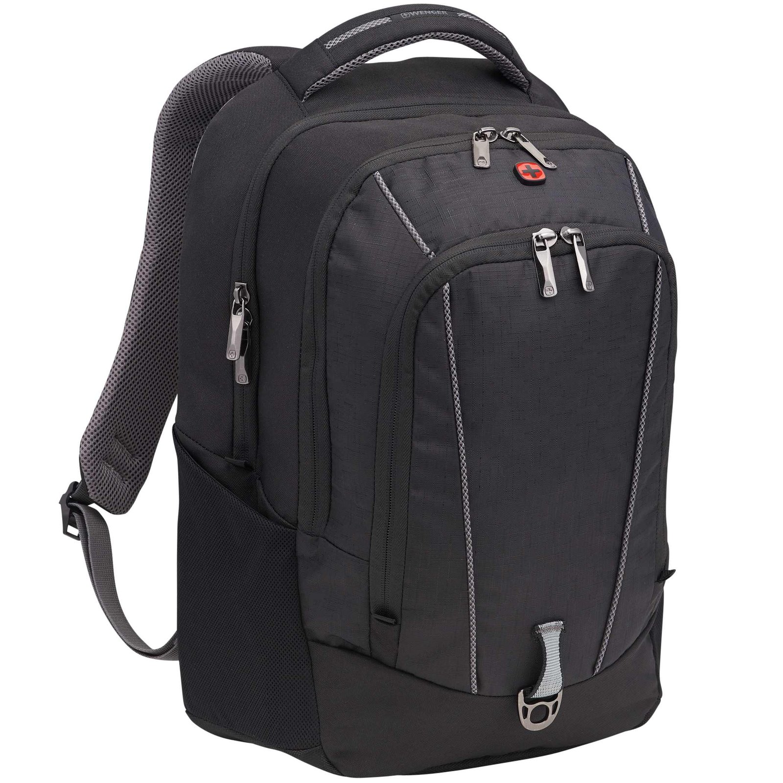 The Wenger Origins Recycled 15” Computer Backpack is made from eco-friendly RPET. The open main compartment features a 15” computer sleeve, plus plenty of room for your belongings. The bag also features an organizational front pocket with key fob, an additional zippered pocket and a mesh foam pocket. The front panel offers a custom d-ring for hanging carabiners. This bag features Wenger® Airflow moisture-wicking mesh, a supportive back board for computer protection and a back webbing trolley sleeve.