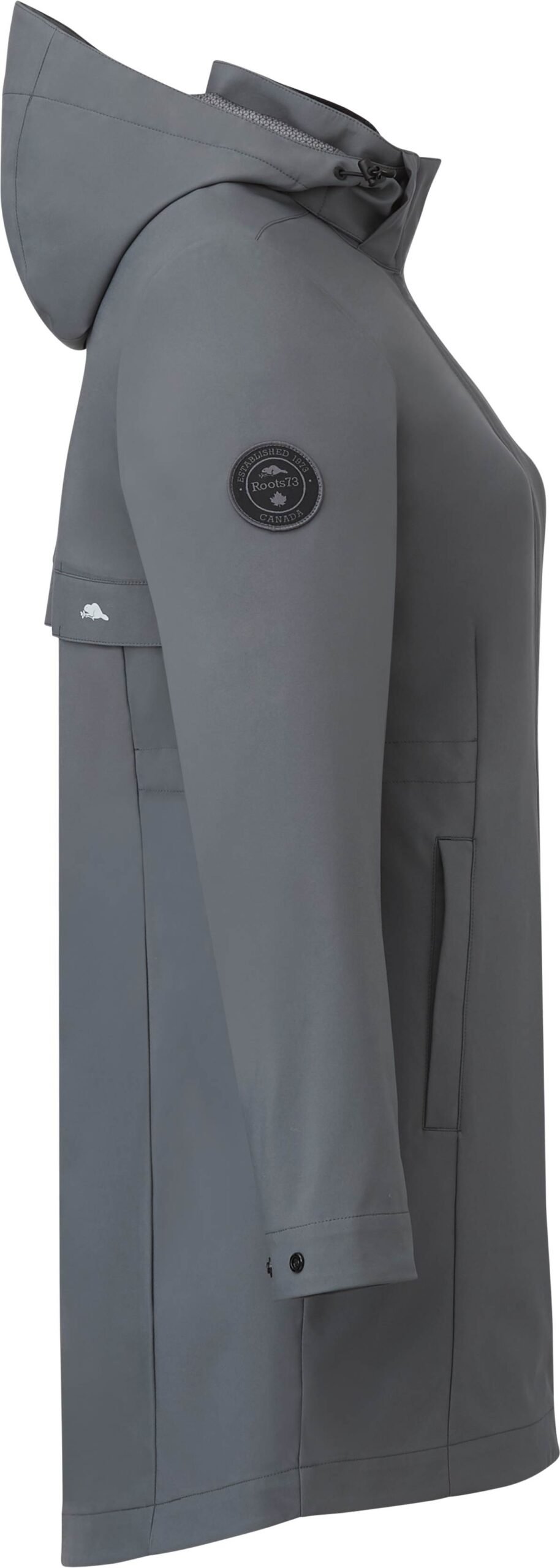 Rain is no match for the women’s Roots73™ Napanee Eco Softshell Jacket. Made with REPREVE® recycled polyester certified by the Global Recycled Standard (GRS) and featuring a breathable, waterproof membrane, this eco-friendly, critically seam-sealed softshell is a must-have for rainy weather. And with a PFC-free water-resistant coating, which means no perfluorinated chemicals were used to treat the garment, it delivers extra weather protection to keep you dry all day. The built-in back vent adds extra breathability. This versatile longer length softshell jacket also features a two-way zipper, zippered pockets, plus a detachable snap-off contour hood with elastic drawcord exterior cordlocks – all made with recycled materials. Women’s features adjustable snap cuffs and interior adjustable waist drawstring for a better fit. As a bonus, it comes in a fully biodegradable polybag!