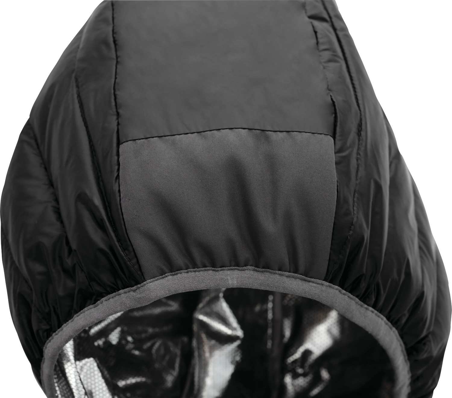 | Materials | OUTER SHELL: 100% Nylon dull cire 380T woven, water repellent (600mm) and downproof, 38 g/mï½² (1.1 oz/ydï½²). LINING: 100% Polyester 240T ECHOHEAT body and hood. 100% Polyester taffeta 210T cire finish. INSULATION: 100% Polyester faux down fill. |