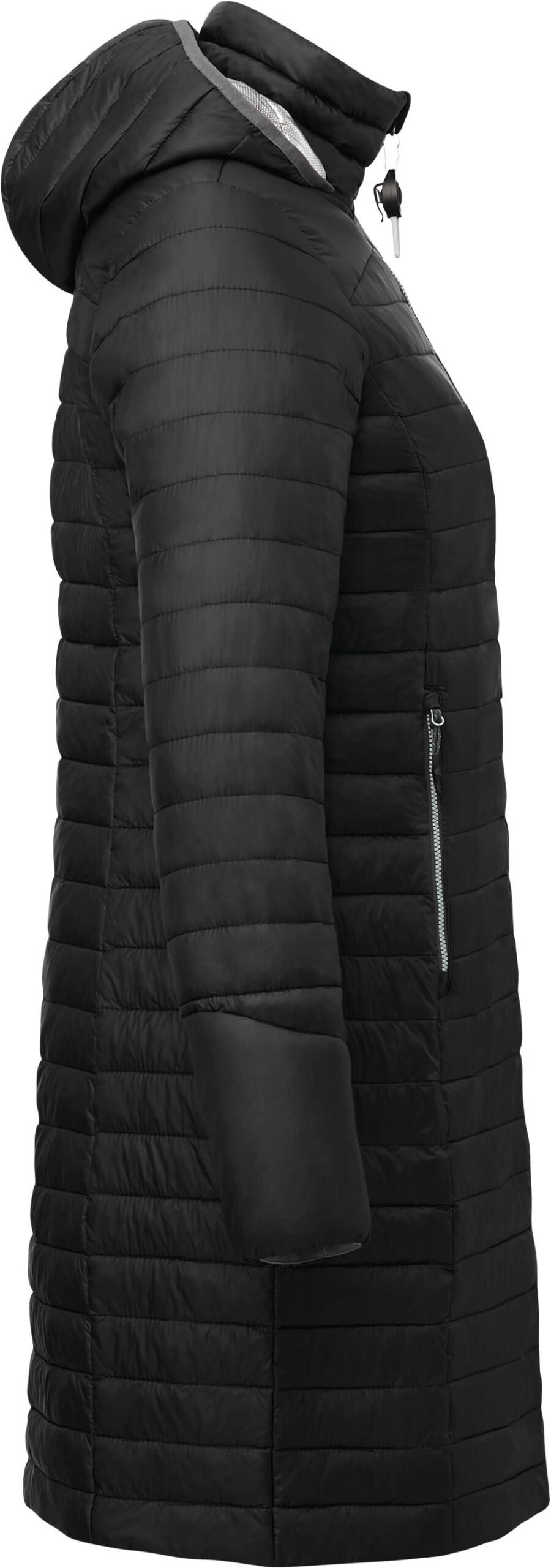 The women’s Silverton Long Packable Insulated Jacket combines a trendy retail look with lightweight warmth and lots of interesting features, starting with an LED zipper pull. It’s also got an ECHOHEAT lining and water-repellent finish for comfort in cold, damp weather. The 3/4 length provides extra protection from the cold, and elasticized cuffs help keep cold air out. The shaped seams and a tapered waist deliver a better fit. And when you’re in the car or on a plane, you can pack it up and stow it away in a stuff sack built into the left pocket. Made with the same fabric and ECHOHEAT lining as both the original Silverton Packable Insulated Jacket and the Junction Packable Insulated Vest, so you stay nice and warm.