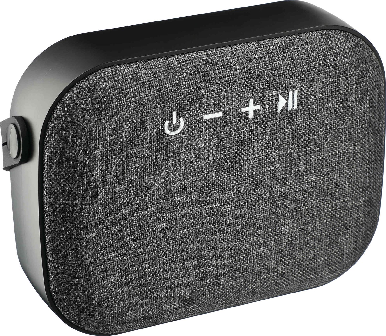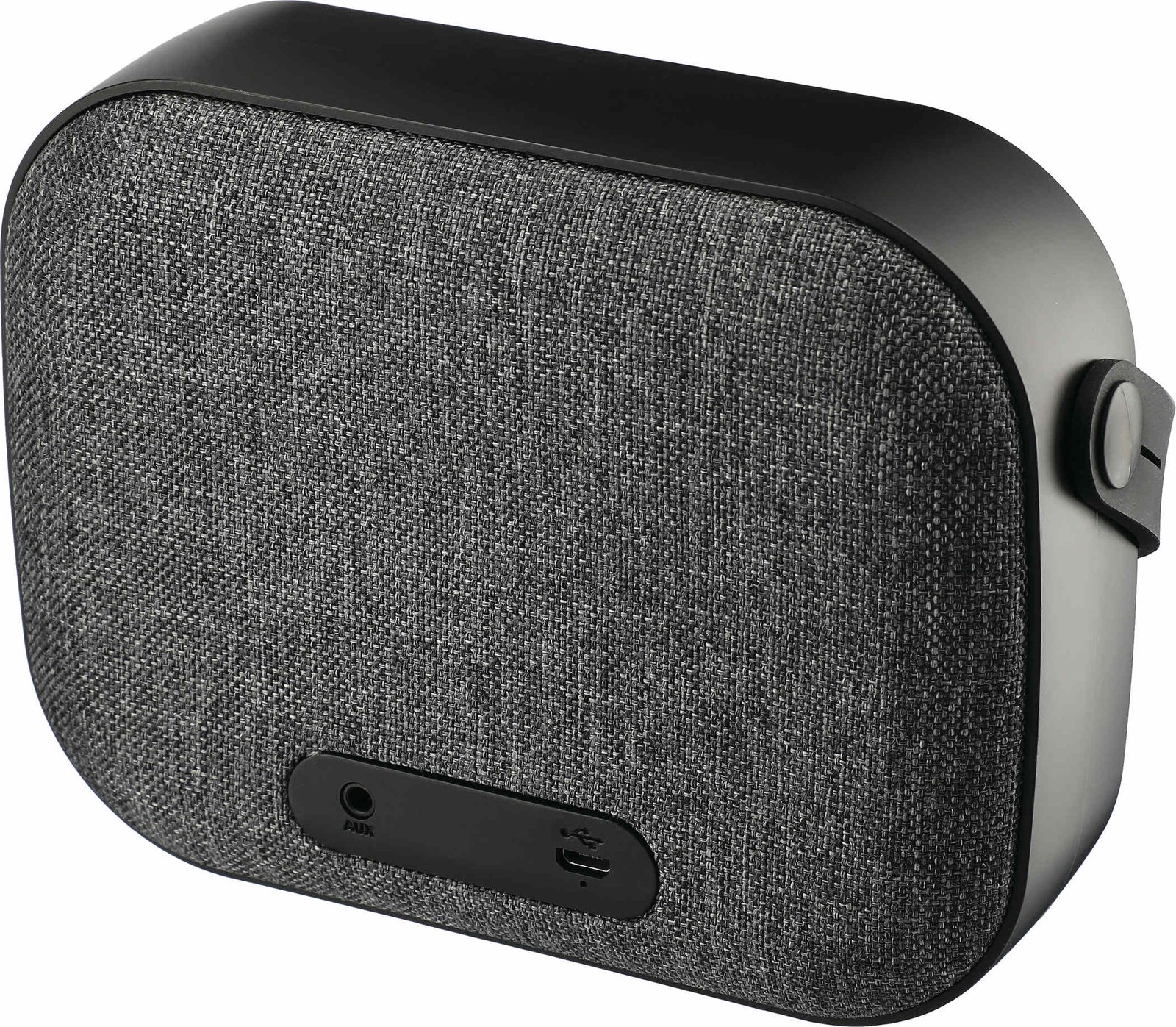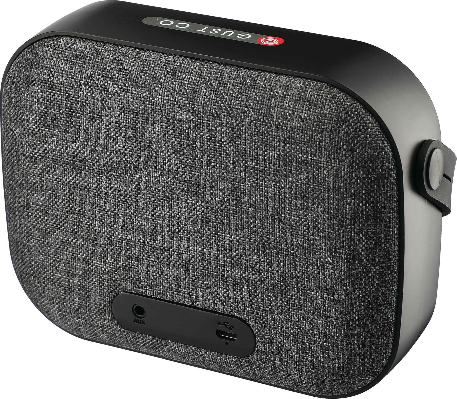 Enjoy exceptional sound of the Woven Fabric Bluetooth® Speaker. Be on trend with the knitted fabric cloth. The speaker has a soft touch but packs a punch with a 5 watt speaker driver. The built-in music control and microphone allows you to control the music and conference call from any location without touching your phone. Bluetooth® working range is 10 meters. Includes Micro USB to USB charging cable and 3.5mm audio cable. Playback time at max volume is 6 hours and charging time is up to 4 hours. Comes packaged in an FSC®-certified giftbox. Key Features 5 Watt speaker Built-in music controls Built-in microphone for hands-free conferencing Working range of 10 meters (33 feet) Approximately 6 hours of playback time at max volume It takes approximately 4 hours to charge the speaker from 0 to 100%
