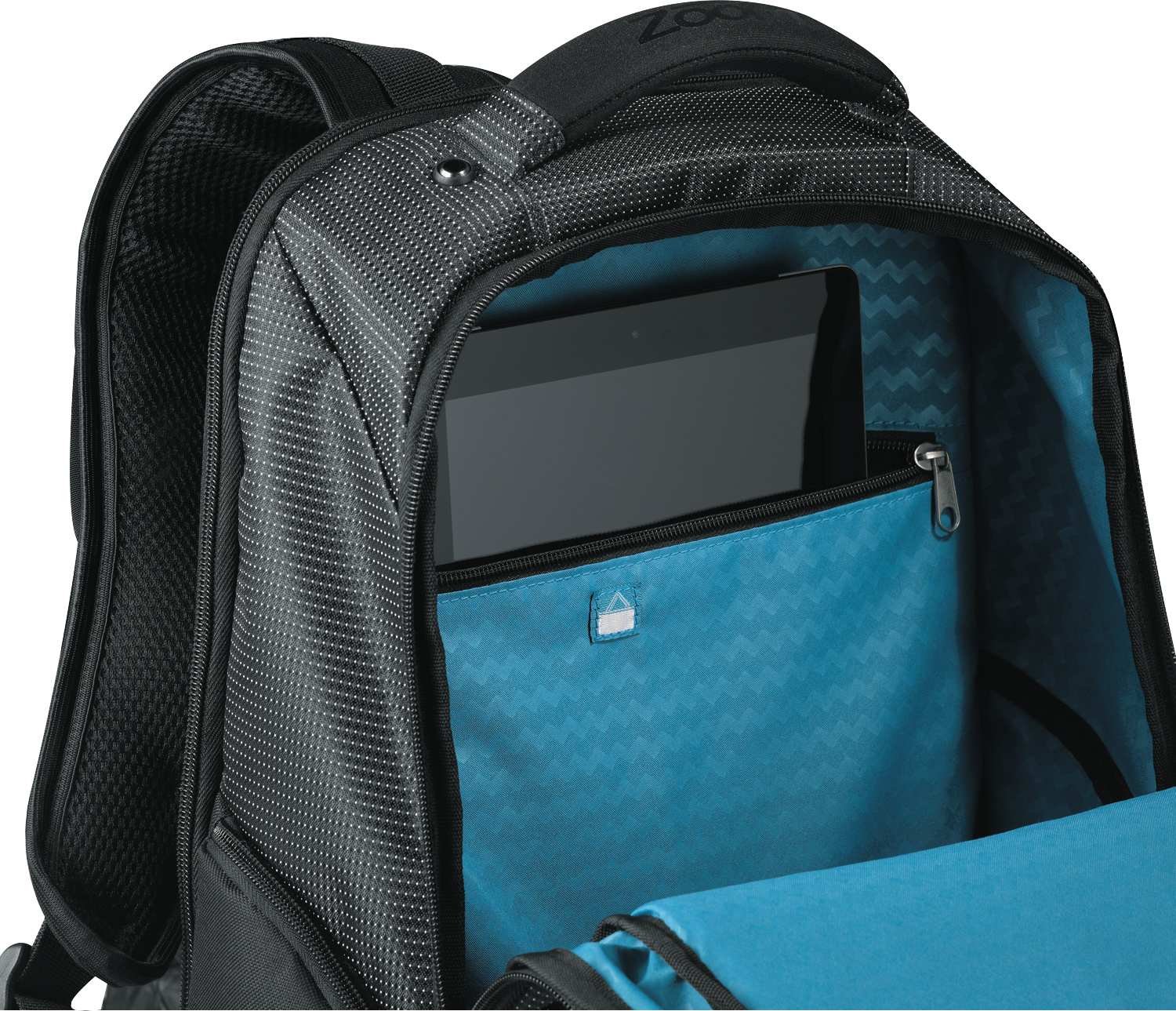 The Zoom® TSA 15” Computer Backpack includes a designated laptop-only section that unfolds to lay flat on the X-ray belt to increase your speed through security. Side-entry laptop compartment holds up to 15 inch laptops. Open main compartment includes a dedicated zippered nylex-lined padded iPad® pocket. A zippered top pocket has an organization panel and earbud port access while a zippered lower front pocket provides deluxe organization. Features two side zippered pockets and a mesh pocket, plus a unique hidden grab handle and neoprene carry handle. Padded back and adjustable padded shoulder straps with media pocket. Back panel designed to slip over trolley handles. Signature Zoom lining and hardware.